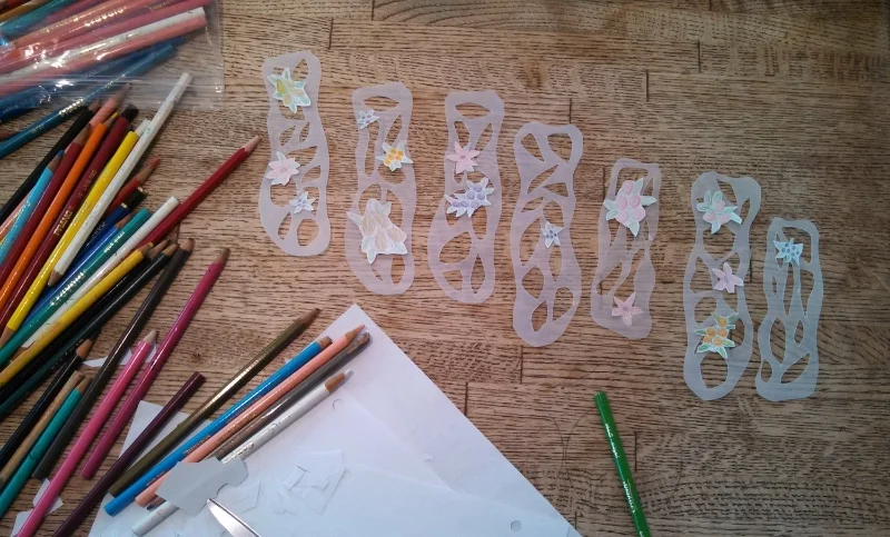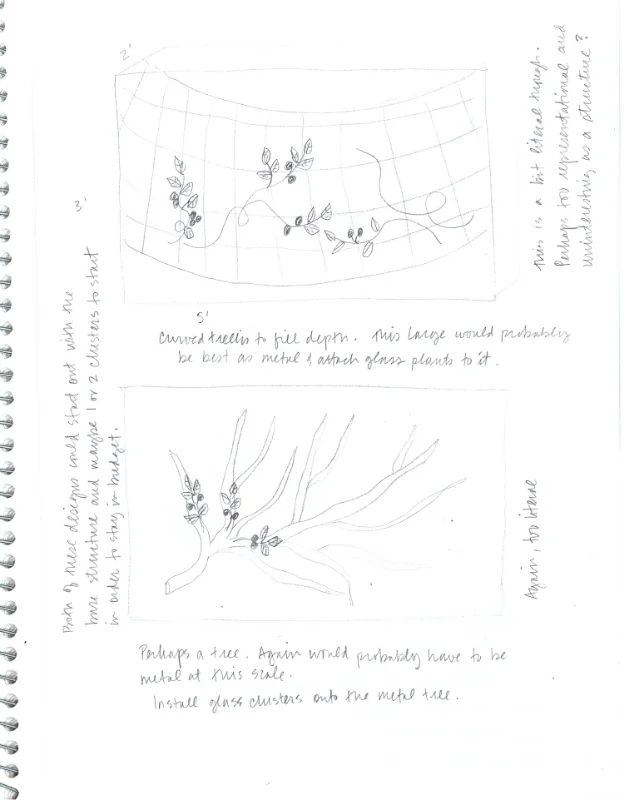 After a week of pondering, sketching, thinking, considering a variety of ideas, I settled on my idea to make garden trellises with botanical elements "growing" on them.