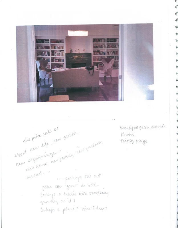 Cynthia and her husband have a new home, new gardens, their daughter is graduating, and their son is getting married. I will design an art piece that signifies growth, becoming, and fertility.