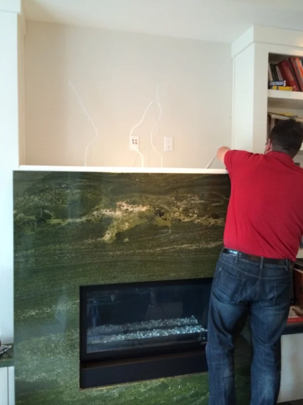Through my art dealer and friend Micaëla of Micaëla Contemporary Projects, I have a new commission. I'm making an art piece for the alcove above her client Cynthia's fireplace, which is a gorgeous, deep green marble.