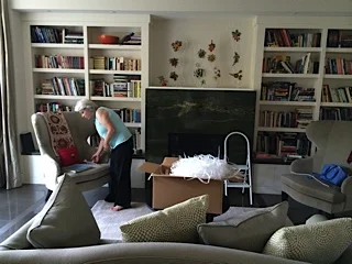 Cynthia, who does dressage, had just returned from riding, and we had a mid-installation celebration. The photographer is always left out of the photos, so we are missing Micaëla van Zwoll, our art dealer and friend, who took the photos.